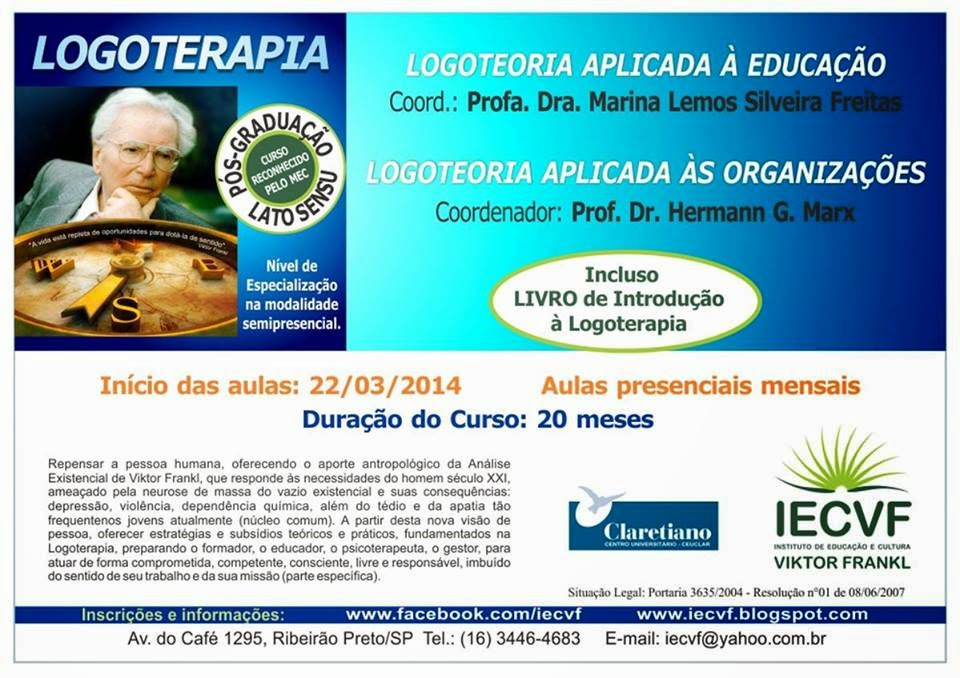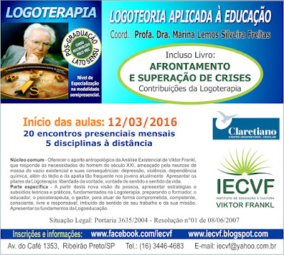 ATENÇÃO Ainda dá tempo de fazer Inscrições para os Cursos de Pós-graduação em LOGOTERAPIA.